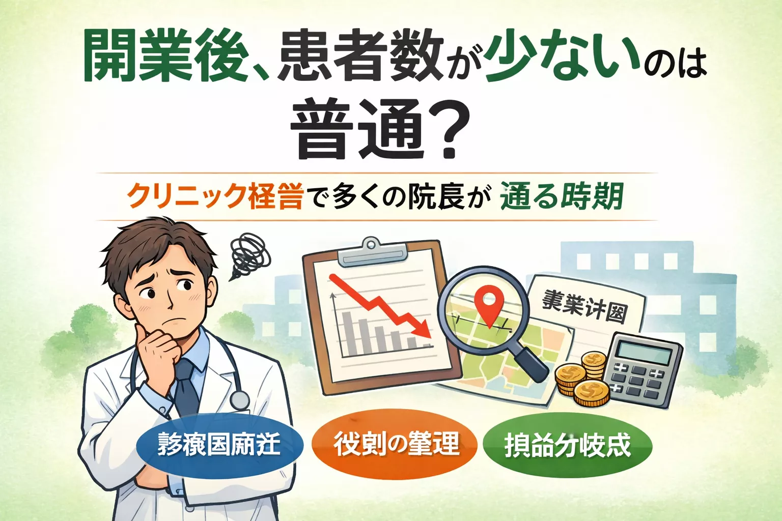 この記事では、開業後に患者数が少ないと感じたとき、