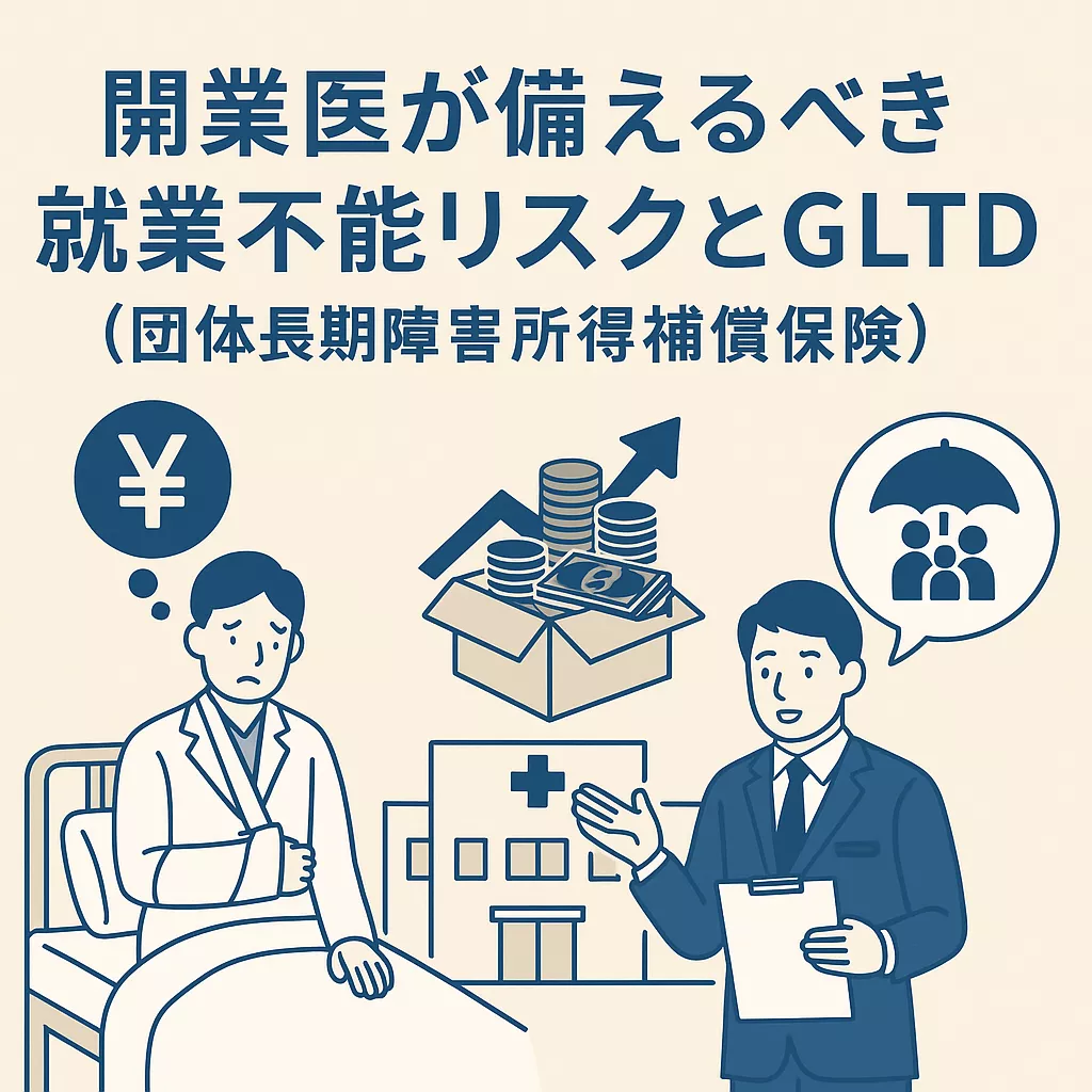 クリニックを開業すると、医療機器や内装工事、スタッフの採用などに多額の資金が必要になります。ローンを組み、長期的に返済していく先生も多いでしょう。そんなときに気になるのが「もし自分が病気やケガで診療できなくなったら?」というリスクです。勤務医時代と違い、開業医は社会保険の傷病手当金がなく、収入が途絶えると返済や生活費の負担がそのまま残ります。本記事では、開業医に必要な就業不能リスク対策とGLTDの役割をわかりやすく解説します。