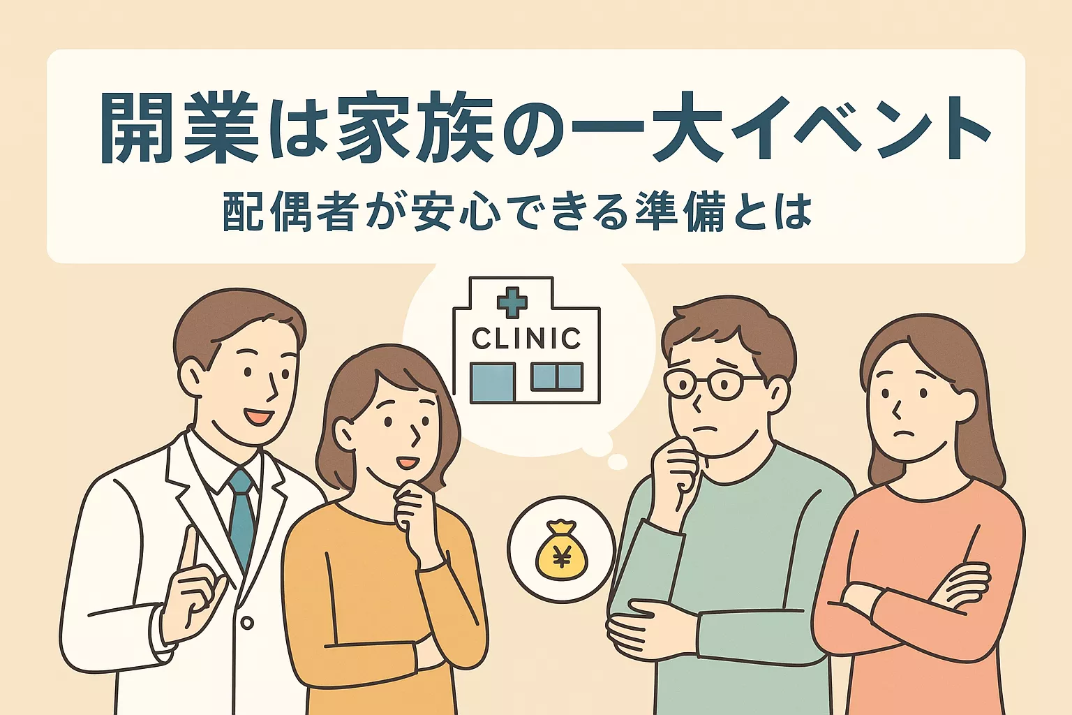 クリニック開業は、先生ご自身だけでなく、ご家族にとっても大きな転機です。配偶者の不安を理解し、早い段階から一緒に準備を進めることが、結果的に経営の安定につながります。本記事では、配偶者が安心するための具体的なポイントを整理します。
