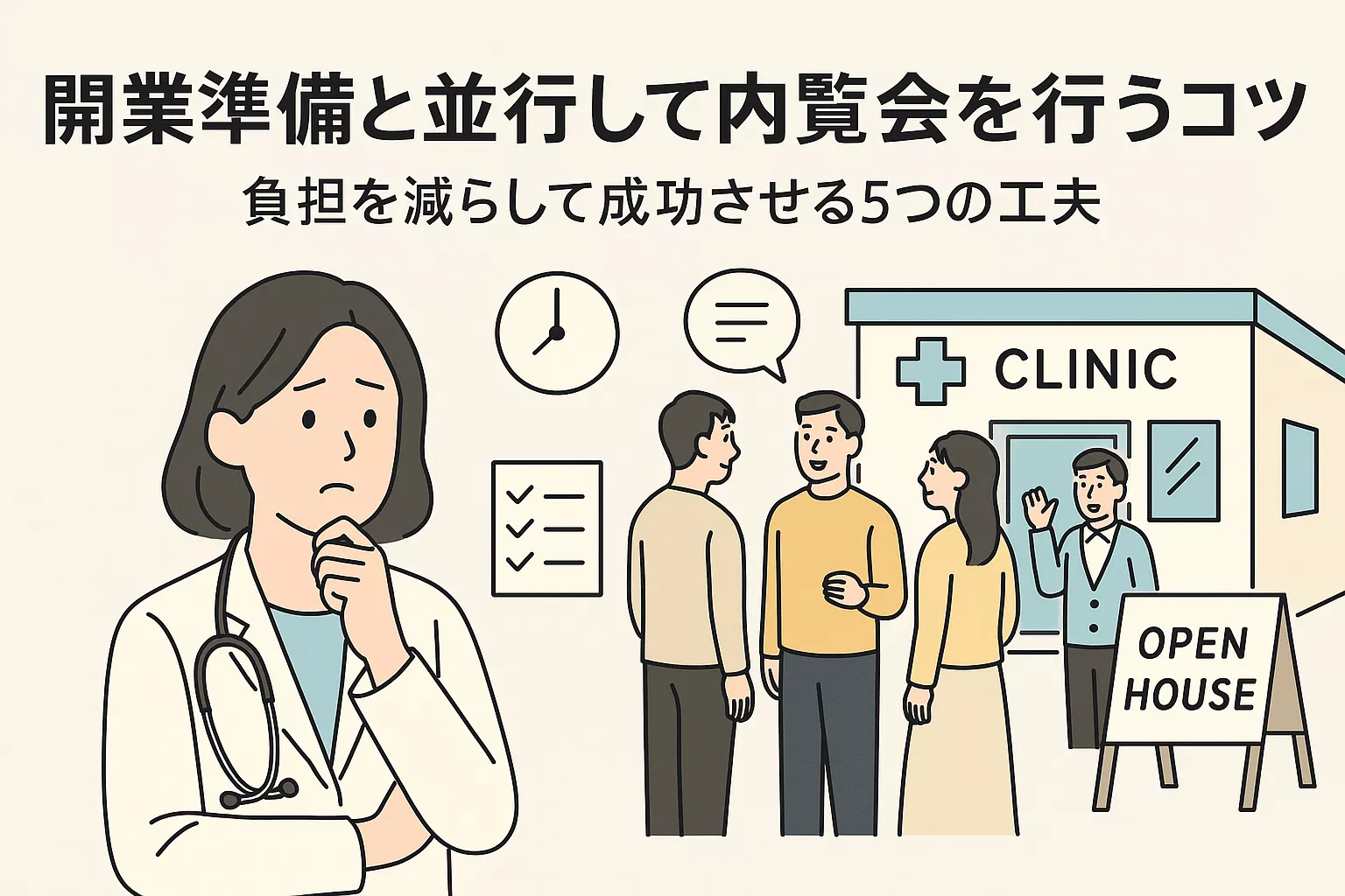 開業準備の終盤は、資金調達・機器の納入・スタッフ研修など、多くのタスクが重なります。その中で「内覧会」まで並行して進めるのは、院長先生にとって大きな負担です。