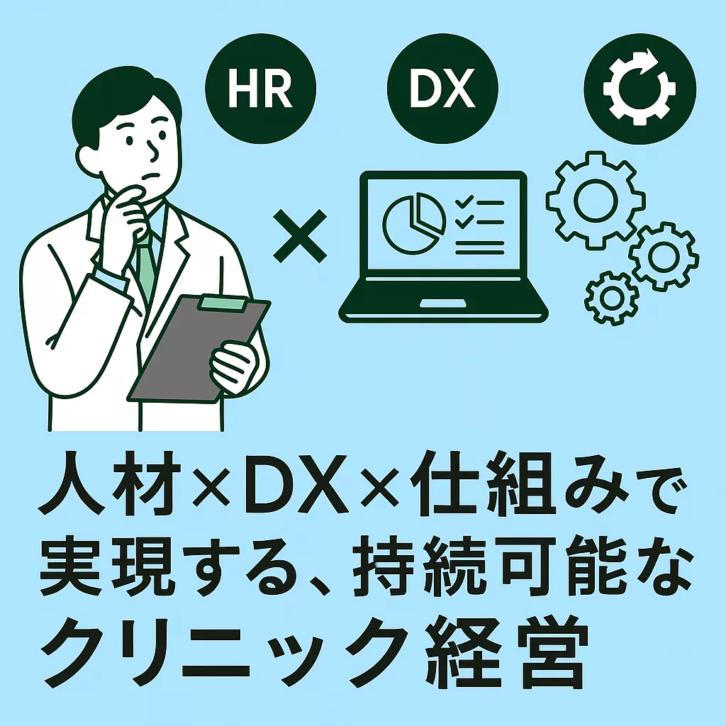 人材不足や制度改定に悩む院長先生にとって、「人材×DX×仕組み」を意識した経営は、持続可能なクリニックを実現する大きな力となるはずです。