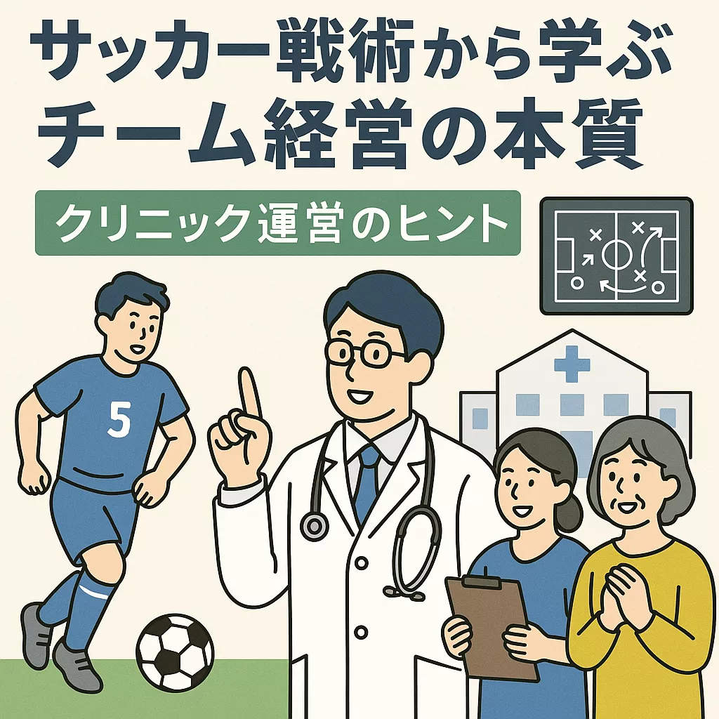 医療とサッカーはまったく異なる世界ですが、「守る」「攻める」「支え合う」という考え方には共通点があります。本稿は、特定の診療科に限らず、どのクリニックにも通用するチーム運営のヒントをまとめたものです。