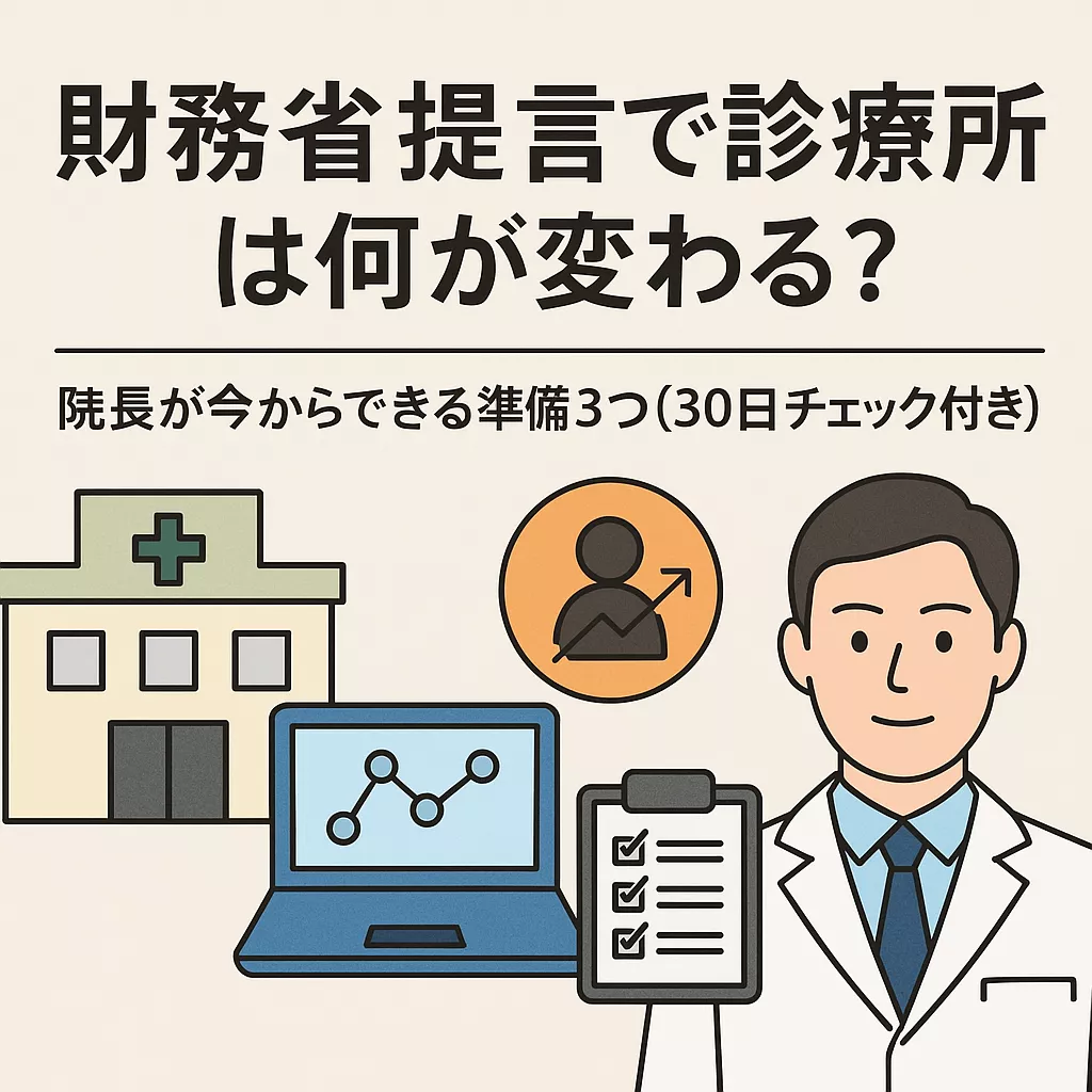 本記事では、財務省提言が診療所に与える“本当の影響”を、院長が判断しやすい形に整理し、今日から取れる現実的な経営アクションを3つにまとめます。