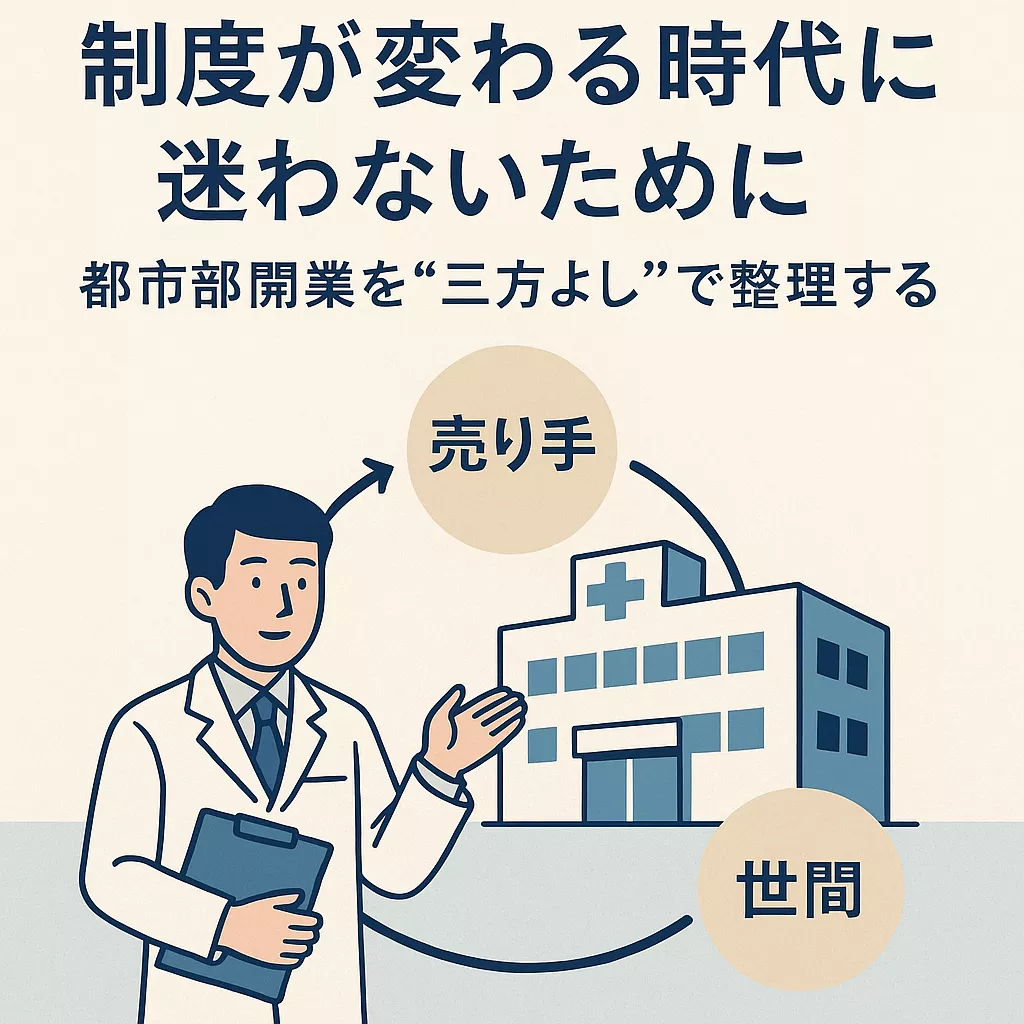 本稿では、こうした状況を「医師 VS 制度」の対立として捉えるのではなく、 日本の商いにルーツを持つ「三方よし(売り手・買い手・世間)」の視点から、都市部で“続けられる開業”を設計する考え方を整理します。