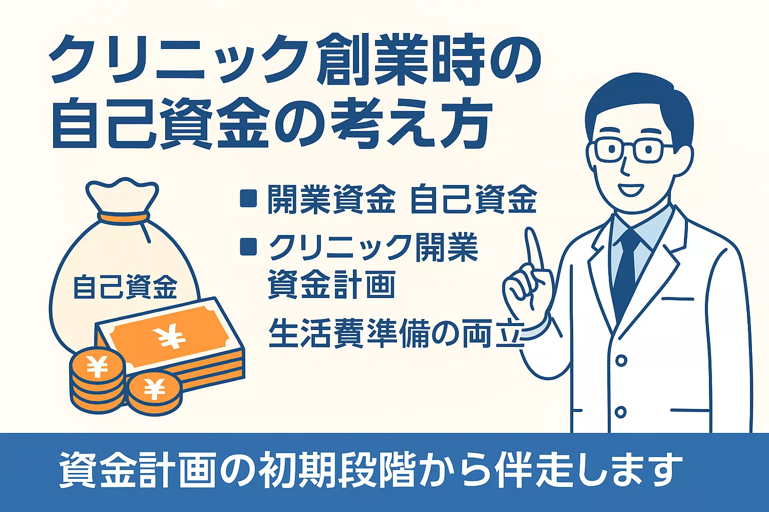 クリニックを開業する際、自己資金の確保・使い方は早い段階で整理しておくべき非常に重要なテーマです。ここでは、 「自己資金とは何か」「どのようなお金が自己資金と認められるか」「自己資金ゼロのリスク」、 さらに生活費を含めた資金計画の目安についてまとめます。
