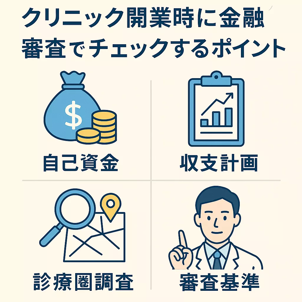 クリニック開業時に金融機関が融資審査でチェックするポイント|自己資金・返済能力・審査基準・診療圏調査