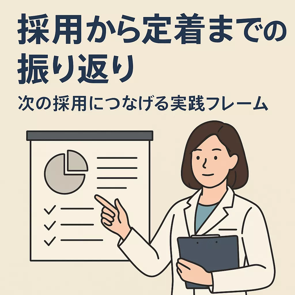 採用と定着は、クリニック経営において繰り返し直面する課題です。「うまくいった点」「改善すべき点」をその場限りで流してしまうと、同じ失敗を繰り返すことになります。逆に、経験を整理して次に活かせば、採用活動が徐々に洗練され、スタッフが長く働きやすい環境に近づきます。つまり、採用は一度きりのイベントではなく、経営改善のサイクルです。