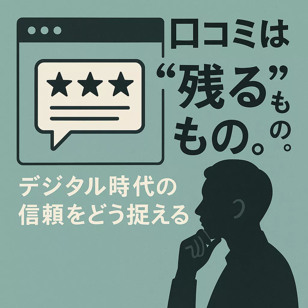 「口コミ対策」という言葉を耳にする機会が増えました。けれども本来、口コミは“操作”するものではなく、“残り続けるもの”です。