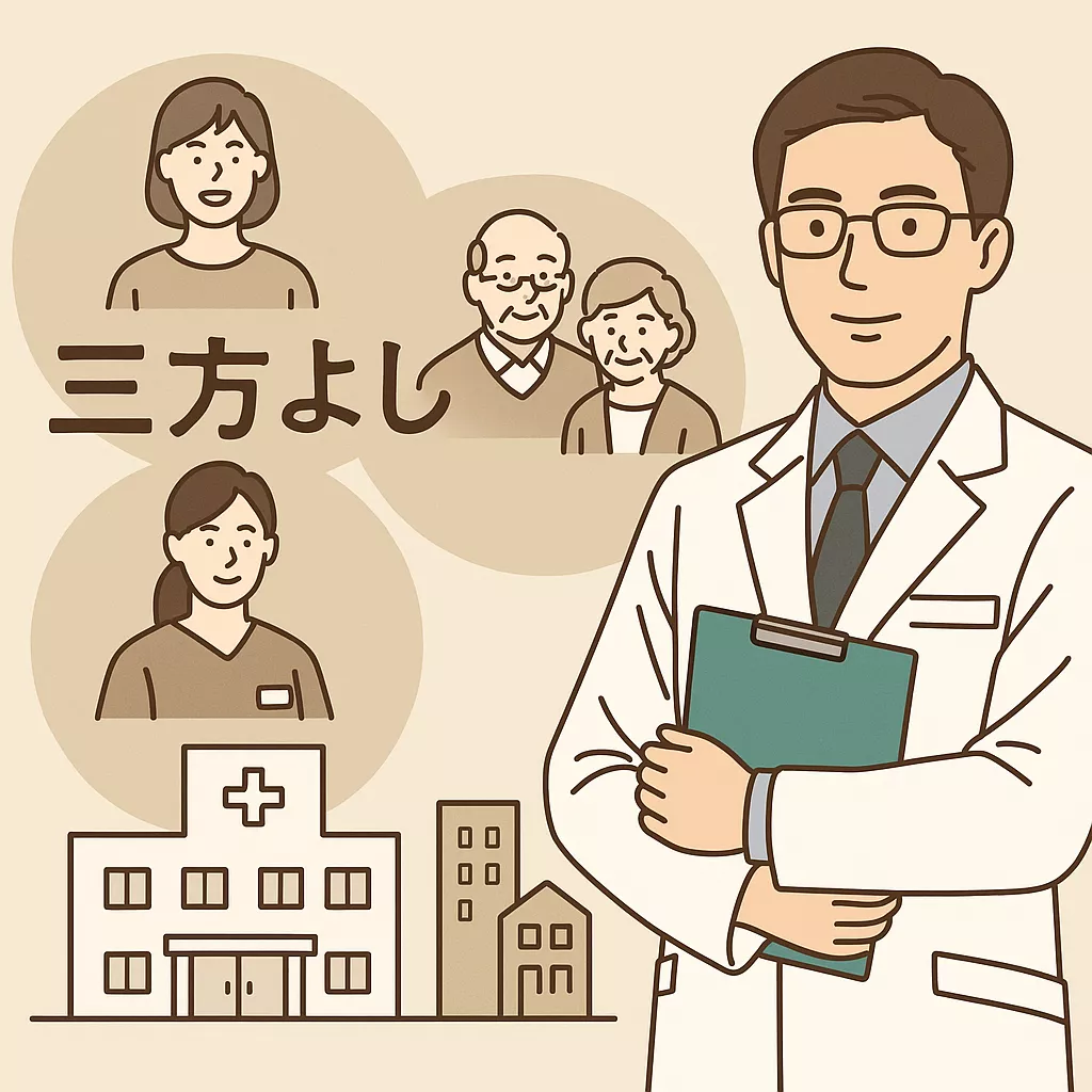患者や地域のために頑張りすぎて医師自身が疲弊してしまっては続きません。三方よしの視点は、バランスを保ちつつ長期的に信頼される経営の軸になります。