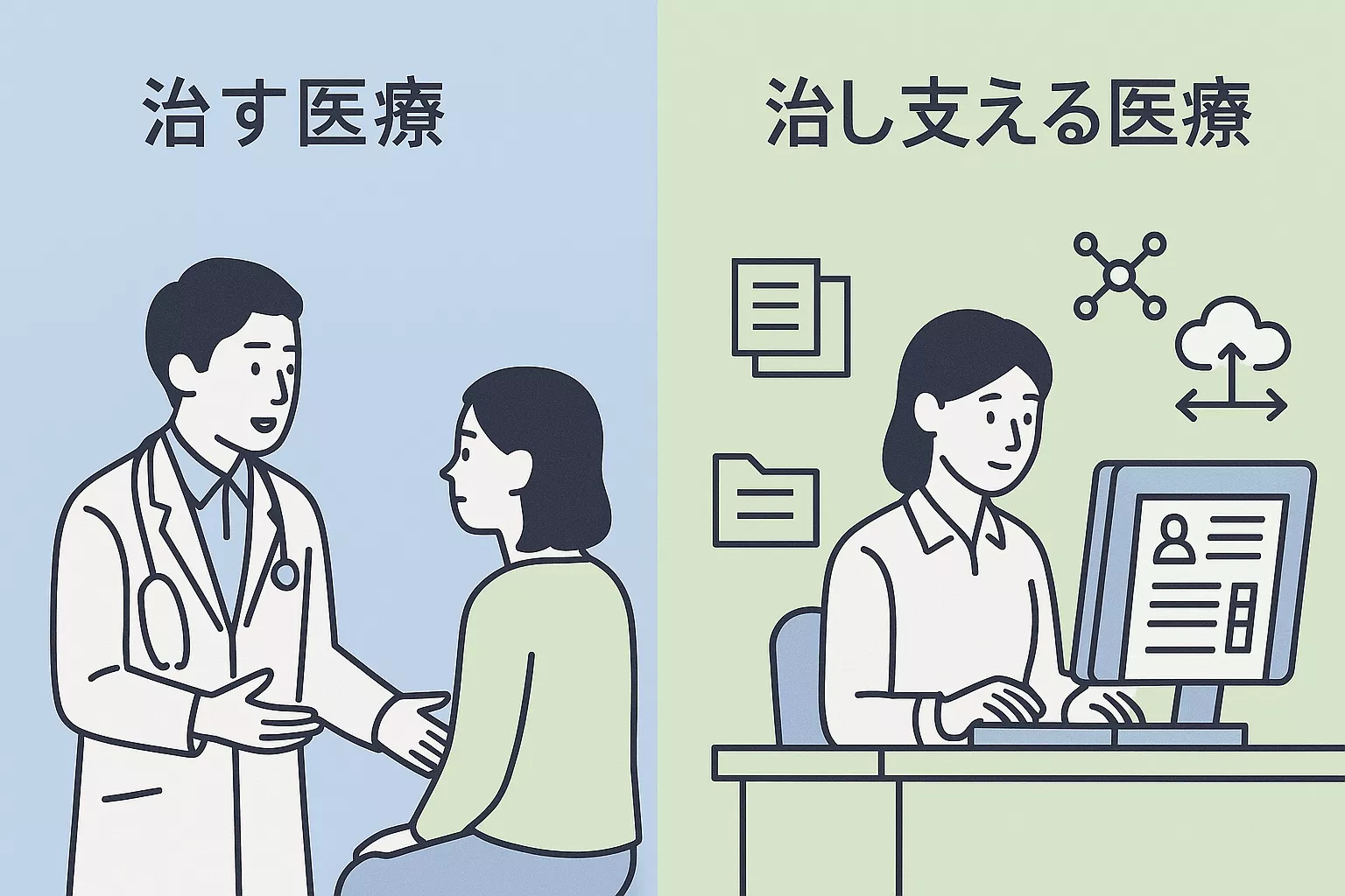 日常診療は「治す医療」で多忙になりがちですが、今後は「治し支える医療」への取り組みが経営の安定を左右します。