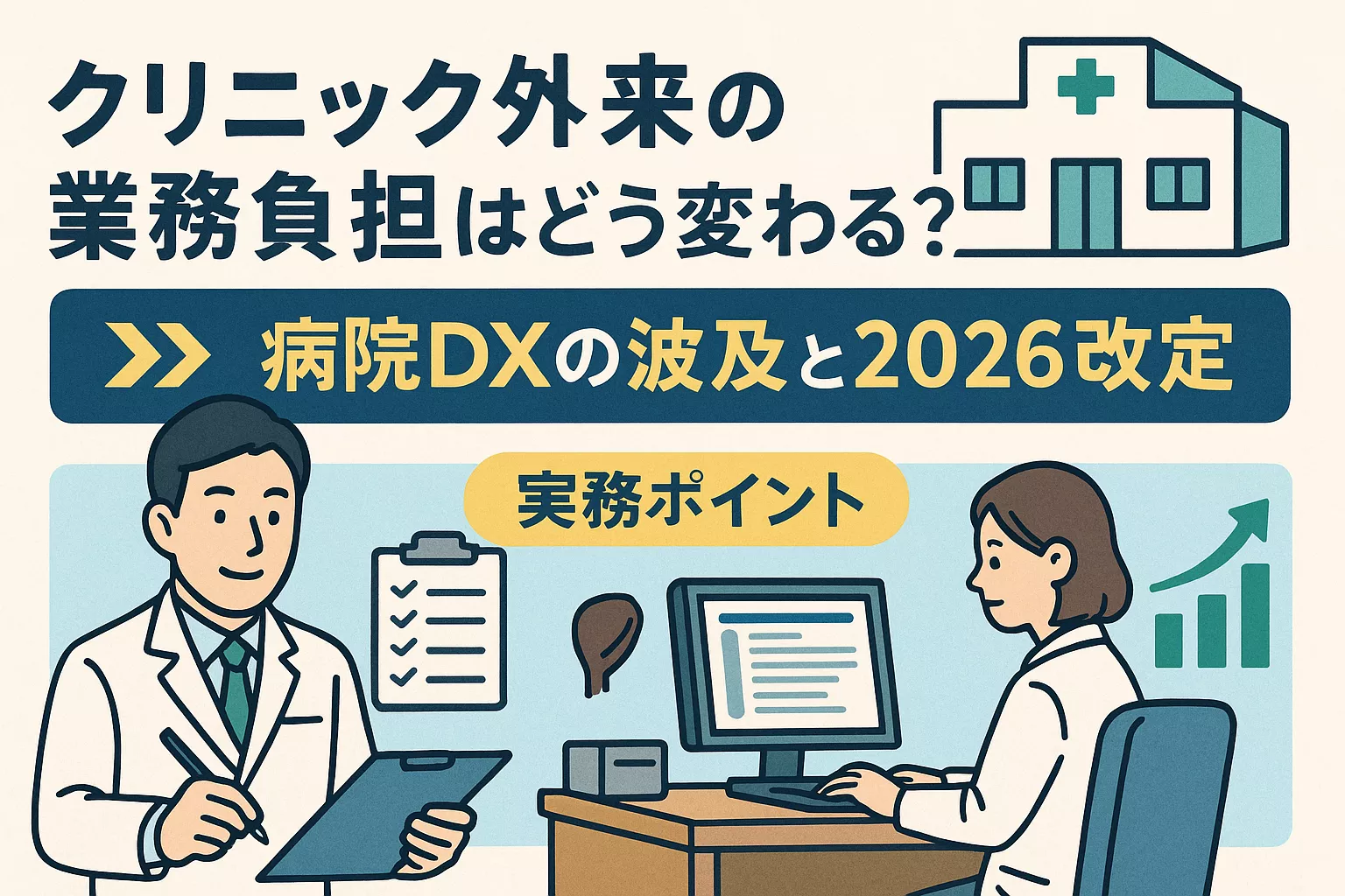 2026年改定では、データ・説明責任・外来効率が重視される方向で、“仕組みで回す外来”への移行が避けられなくなる可能性があります。
