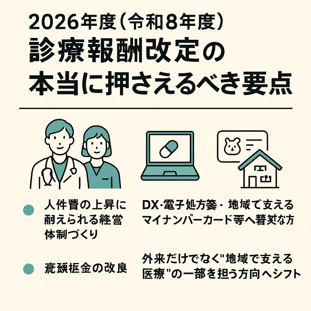 みずほ銀行の産業レポートと、2026年度診療報酬改定の基本方針(骨子案)を合わせて読むと、 これからのクリニックに求められる姿が、少しクリアに見えてきます。