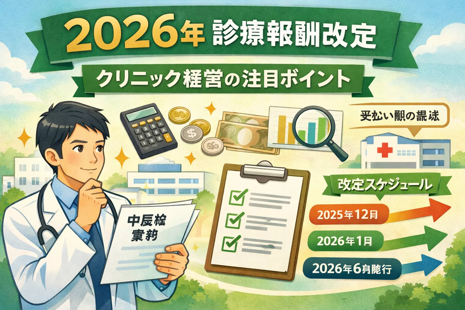 ※本記事は、令和7年12月26日時点で示された「中医協」が公表した資料をもとに、クリニック経営の観点から整理したものです。