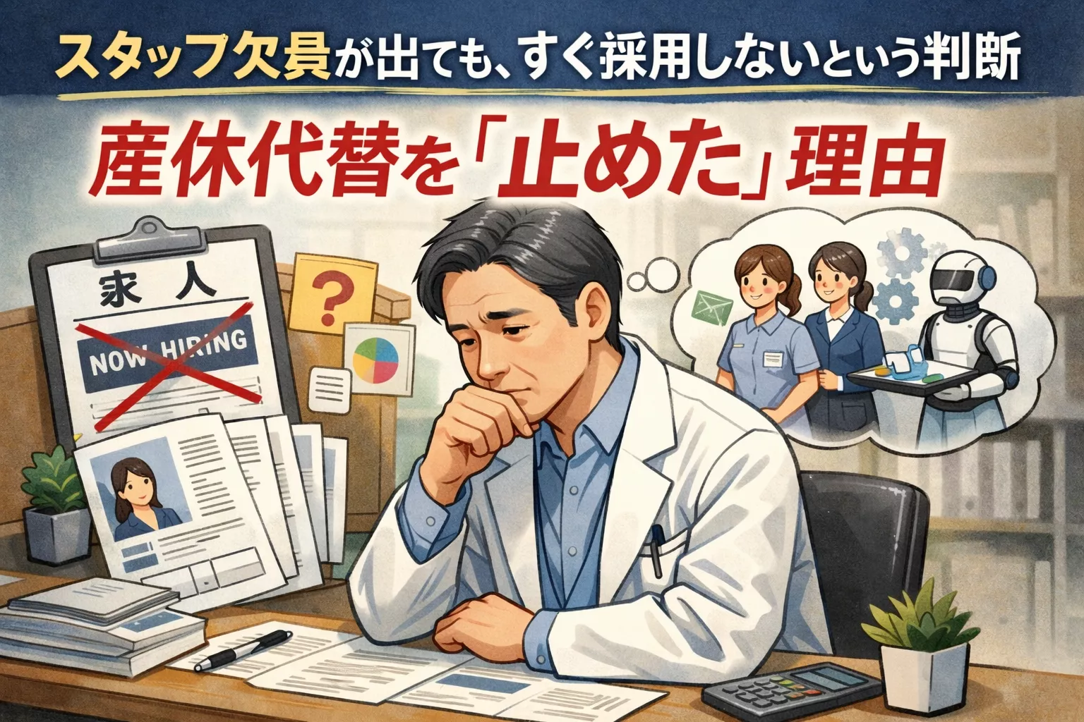 ある院長先生から、「スタッフが産休に入るため、その期間を埋める代替スタッフを募集したい」とのご相談をいただきました。院長先生の頭の中には、すでに求人広告の予算や、いつまでに面接を終えるべきかというスケジュールが浮かんでいました。